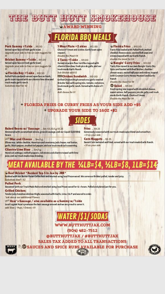 Welcome to The Butt Hutt Smokehouse, where the essence of American barbecue comes alive in Jacksonville, Florida. Nestled at 3210 Roosevelt Blvd, this delightful eatery has carved its niche with a menu that promises smoked perfection alongside a casual, welcoming atmosphere.