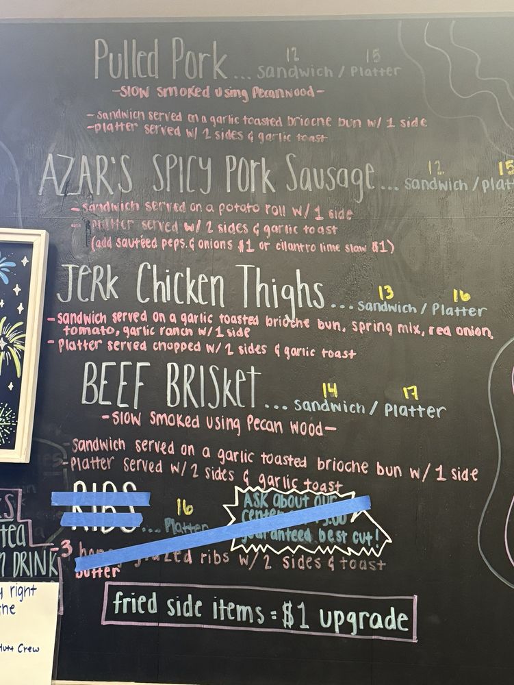 “ I was in the mood for BBQ and The Butt Hutt Smokehouse had been on my radar for a while. I decided to give them a try for a lunch date with hubby. I ordered the brisket platter with collard greens, mac & cheese and garlic toast. Hubby ordered the brisket and pulled pork platter with fries, mac & cheese and garlic toast. The brisket was flavorful and juicy with a nice smoke ring. I really enjoyed the collard greens! I wasn't a huge fan of their mac & cheese. I thought it was dry and didn't care for the chili flakes in there. The fries were crispy and seasoned well. Hubby made a little pulled pork sandwich with the garlic toast and that was very good! Service was fast and friendly. Outdoor seating was very nice. Overall, I would definitely visit again. ”