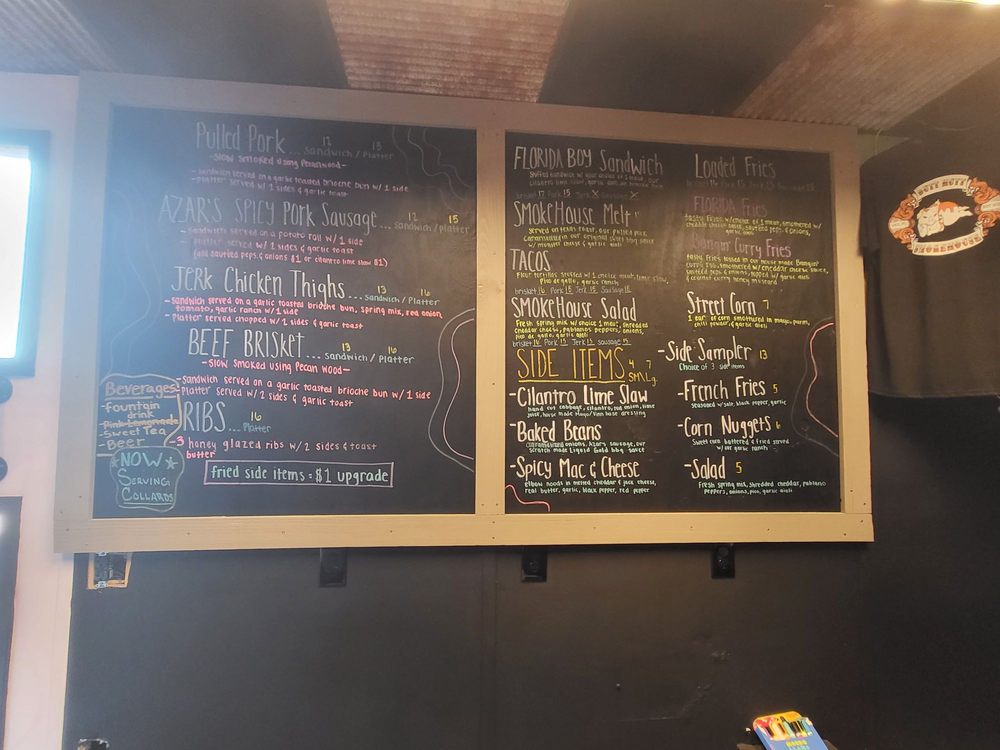 “ This is one of my favorite BBQ spots in Jax. It's not trendy, but it's a cool, local spot that feels nicer than the really casual BBQ chains. The brisket is their most popular meat, which I loved, but I personally like the pulled pork a little more, probably because I like my brisket extra lean (just a personal preference). They have a great array of BBQ sauce options- I always go for the sweeter sauce. And I know it may sound weird, but I LOVE their salad, which I've always gotten as one of my sides. I think it may have chopped jalapeños in it that give it a different kind of taste but with no kick. Honestly, I've always had it without dressing and it really doesn't need it IMO. The fries are awesome too. The service is quick, friendly, and helpful. The spot is really unique, with nice picnic benches for outdoor seating overlooking the colorful cool murals on the outside wall. The inside is really narrow and has limited seats but we haven't had issues getting seated on a non-special event night. They have a few TV's showing sports games and they have several beers by the bottle and on draft. ”